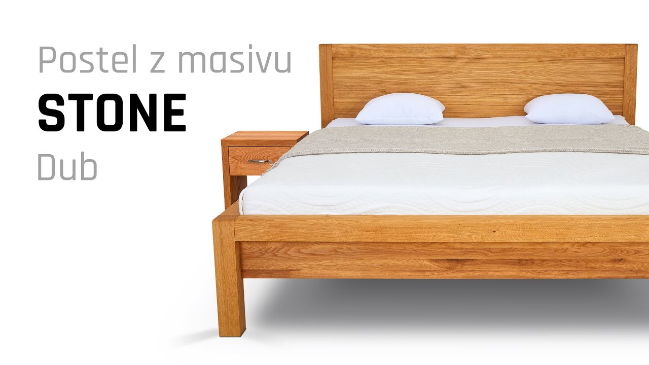 Postel z masivu s úložným prostorem STONE má zaoblenou hranu v hlavovém a nožním čele. Šíře masivu hlavového a nožního čela postele je 8 cm. Bočnice jsou tvořené 4 cm masivem, postel budí celkově velmi masivní dojem a vypadá opticky větší.