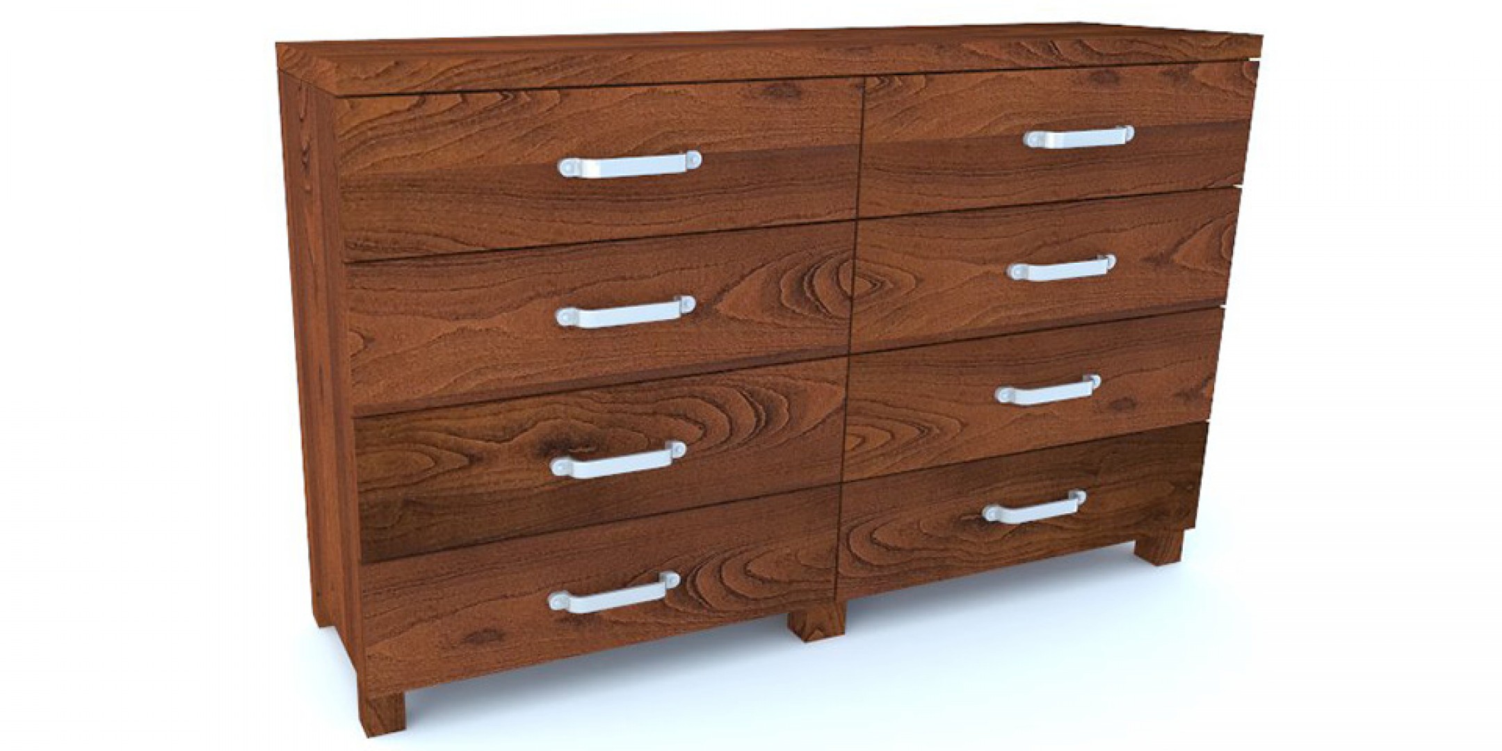 Komoda BRAVE DUO s osmi zásuvkami s možností výběru dvou šířek. Provedení masiv/masivní dýha - Buk, Bříza, Dub, Javor, Jasan. Rozměry komody jsou šíře 140 cm x hloubka 45 cm x výška 100 cm. Na přání uděláme komodu v jakémkoliv rozměru. Kalkulaci na jiný rozměr Vám sdělíme obratem. Komoda je vyrobena z masivu a boky komody jsou z masivní dýhy. Vnitřní konstrukce šuplíků je z lamina v dekoru vybraného moření, nebo barvy dřeva. Výsuvné kování je rolničkové od Hettich.