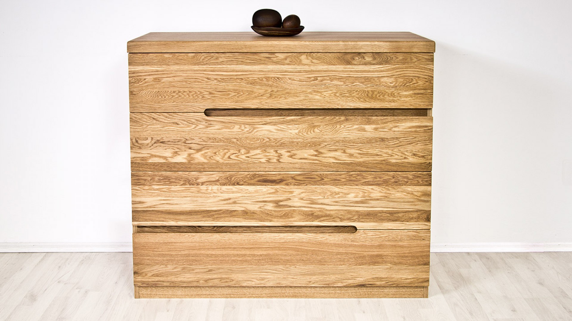 Komoda z masivu PALERMO je tvořena z materiálů masiv Buk nebo Dub v kombinaci s masivní bukovou nebo dubovou dýhou. Za příplatek pak může být vyrobena v celomasivním provedení z materiálů masiv Buk nebo Dub. Vnitřní část zásuvek je vyrobena z materiálu lamino v dekoru buku nebo dubu. Horní plát je vždy vyroben z vybraného masivu a boky komody jsou dle výběru buď také z masivu nebo z masivní dýhy. Zezadu je komoda nepohledová (sololit). Dle přání zákazníka můžeme změnit vzhled čel zásuvek tzv. drásáním (toto lze pouze u varianty Dub). Na přání uděláme komodu v jakémkoliv rozměru. Kalkulaci na jiný rozměr Vám sdělíme obratem. Rozměr komody je šíře 100 cm, nebo za příplatek 120 cm, hloubka 45 cm, výška 100 cm.