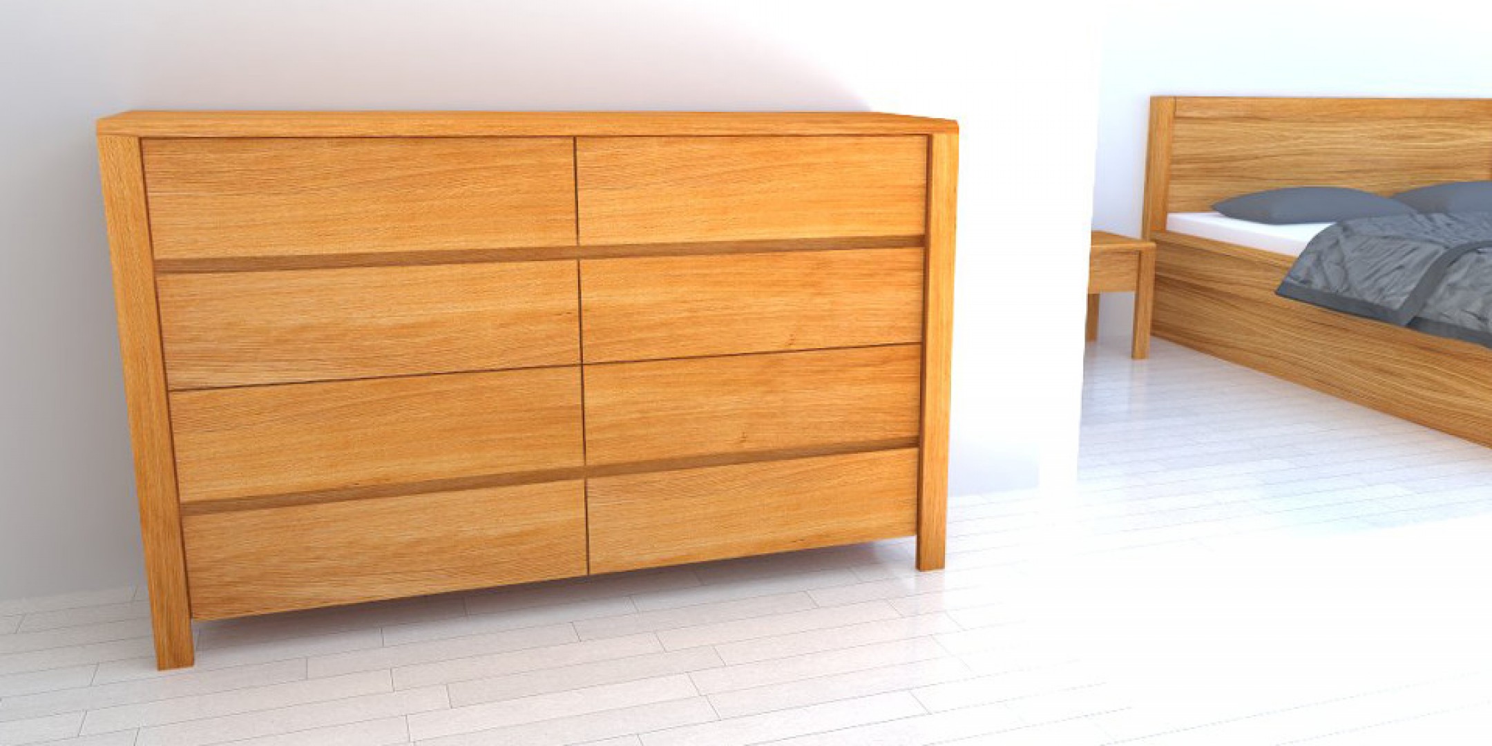 Elegantní komoda STONE na nožičkách s osmi zásuvkami. Provedení masiv/masivní dýha - Buk, Dub, Jasan. Rozměry komody jsou šíře 160 cm x hloubka 45 cm x výška 100 cm. Na přání uděláme komodu v jakémkoliv rozměru. Kalkulaci na jiný rozměr Vám sdělíme obratem. Komoda je vyrobena z masivu a boky komody jsou z masivní dýhy. Vnitřní konstrukce šuplíků je z lamina v dekoru vybraného dřeva. Výsuvné kování je Hettich Quadro nebo Hettich Quadro s tlumeným dojezdem. Komada je osazena příchytkami pro upevnění ke zdi.