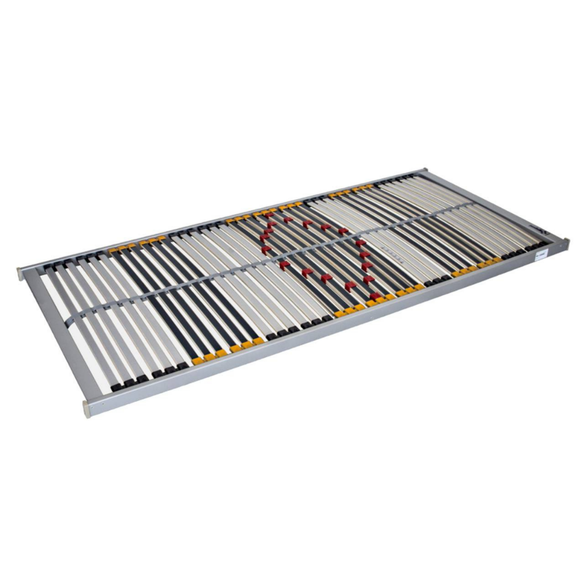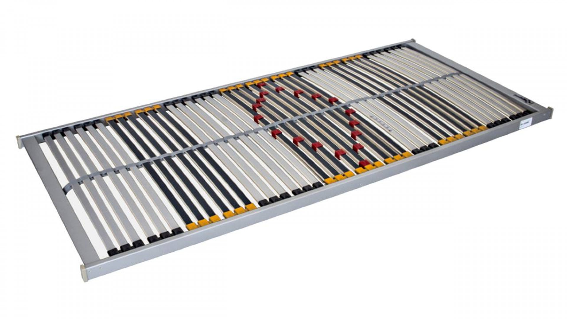 Lamelový rošt FLAT 42 je speciálně nízký typ roštu určen do rámů postelí s nízkou bočnicí. Trojitá kaučuková pouzdra, zpevňující středový výplet, 42 lamel, 7 anatomických zón, regulace pod bederní oblastí, nosnost 130 kg, záruka 5 let. Rošt je vyroben z kombinace dřev březový rám a březové lamely s krycí folií. Kovový pouze design.