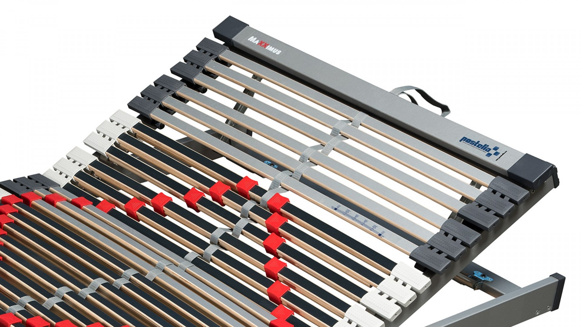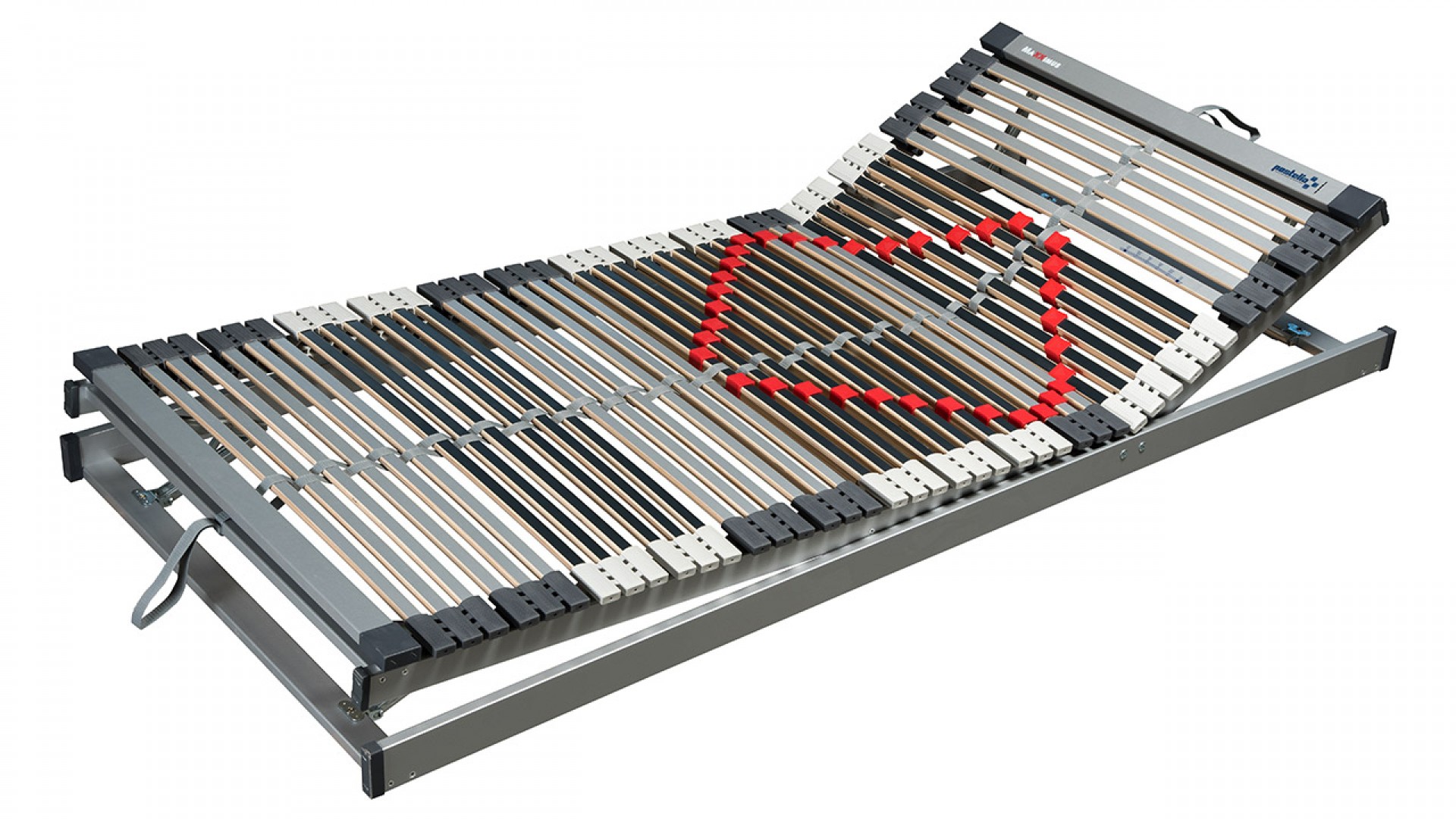 Lamelový rošt MAXXIMUS 42 je extra odolný s extrémní nosností do 200 kg, zesílené lamely a robustní konstrukce. Zpevňující středový výplet, 42 lamel, aktivní kaučuková pouzdra, 7 anatomických zón, regulace pod bederní oblastí, nosnost 200 kg, záruka 5 let, 18 zesílených zdvojených lamel pro maximální navýšení nosnosti.