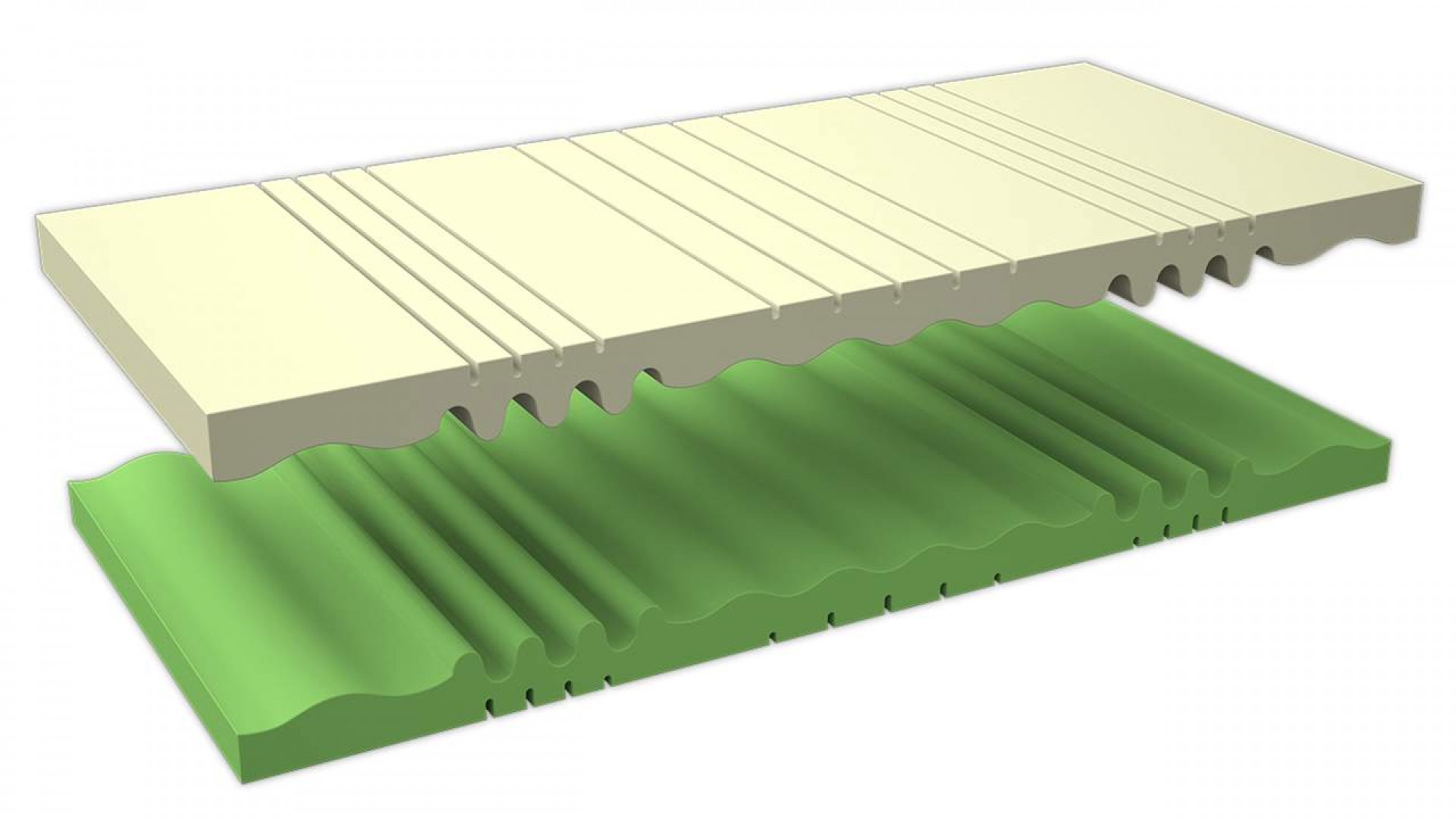 - Matrace je vhodná pro lamelový rošt, ale i pevný rošt (na kterém je třeba počítat s vyšší tuhostí a kratší životností)