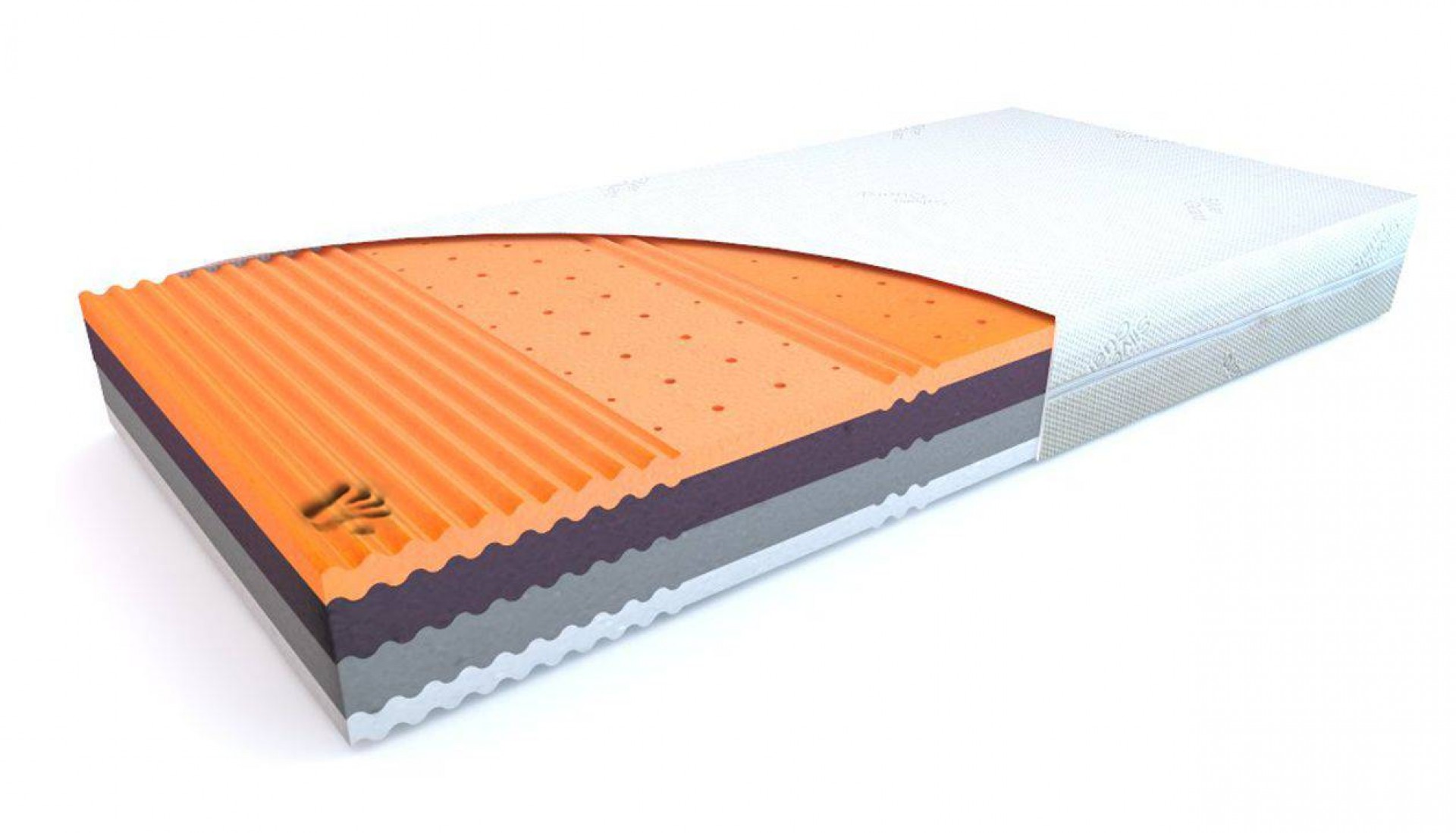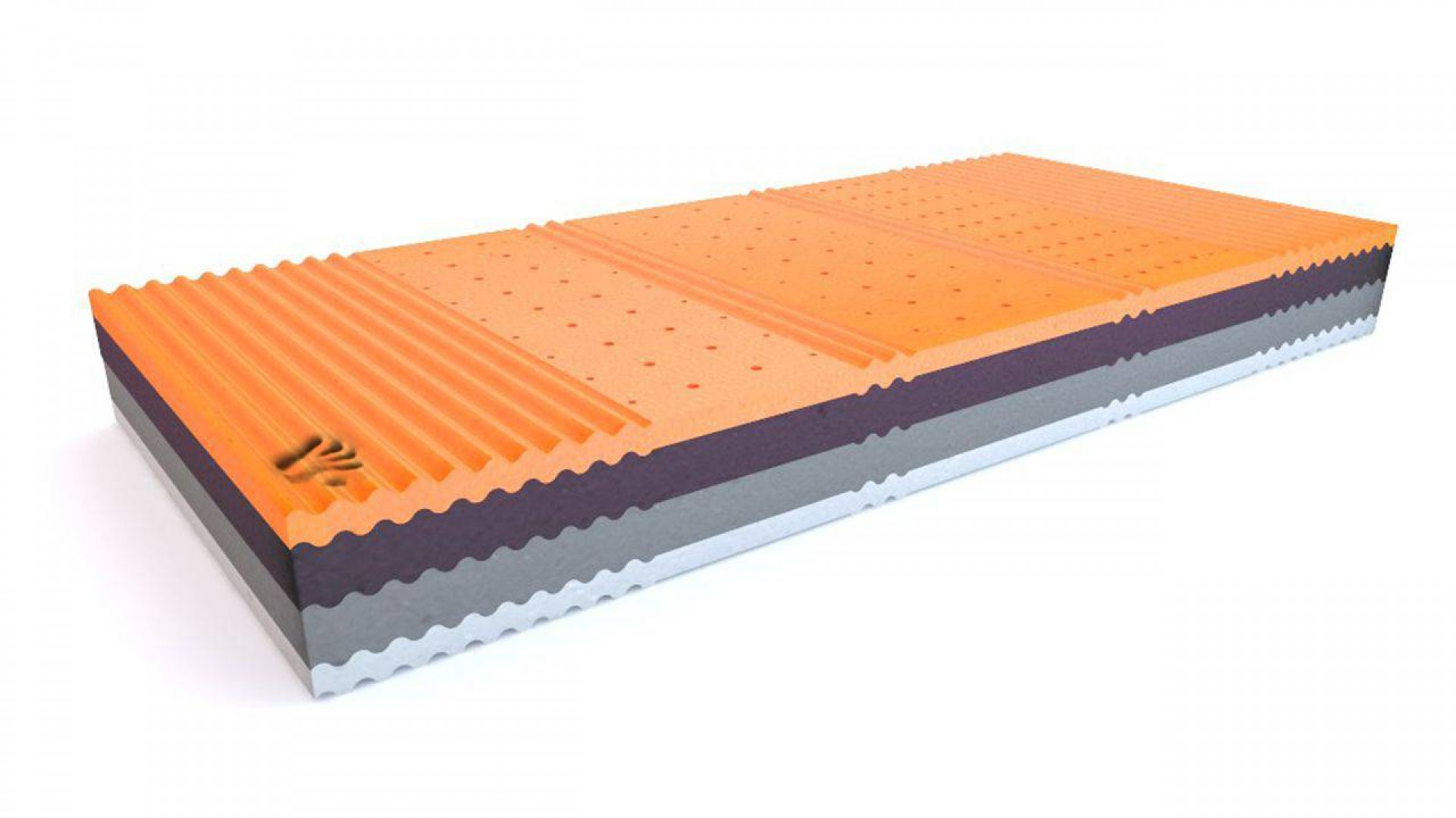- Kombinace komfortních studených pěn s dokonale tvárnou vrstvou paměťové pěny, všechny o vysoké hustotě 60 Kg/m3