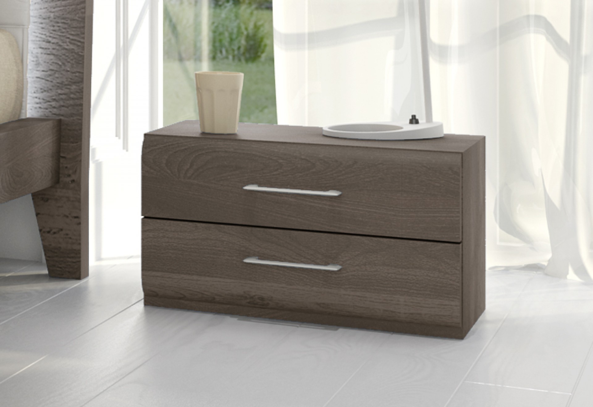 Noční stolek z masivu BERGAMO s 2x šuplíkem. Základní rozměr nočního stolku je šíře 50 cm, hloubka 35 cm, výška 40 cm.jZákladní výsuvné kování je rolničkové, nebo s příplatkem ložiskové výsuvy Quadro®, nebo Quadro Silent®(samodobržďovací). Kování je od Německého výrobce Hettich®. Noční stolek je vyroben z masivu, respektive masivní je horní deska a čílka nočního stolku. Boky stolku jsou z masivní dýhy. Za příplatek pak může být vyroben v celomasivním provedení z materiálů masiv Buk, nebo Dub. Vnitřní konstrukce šuplíků je vždy z lamina, dekor přírodní buk(nebo dub), dno stolku je z bílého sololitu. Zadní část nočního stolku je nepohledová, v zadní části stolku je použit přírodní sololit. Noční stolek lze zvolit s frézovaným úchytem, nebo lze vybrat některé z madel od značky SIRO®.