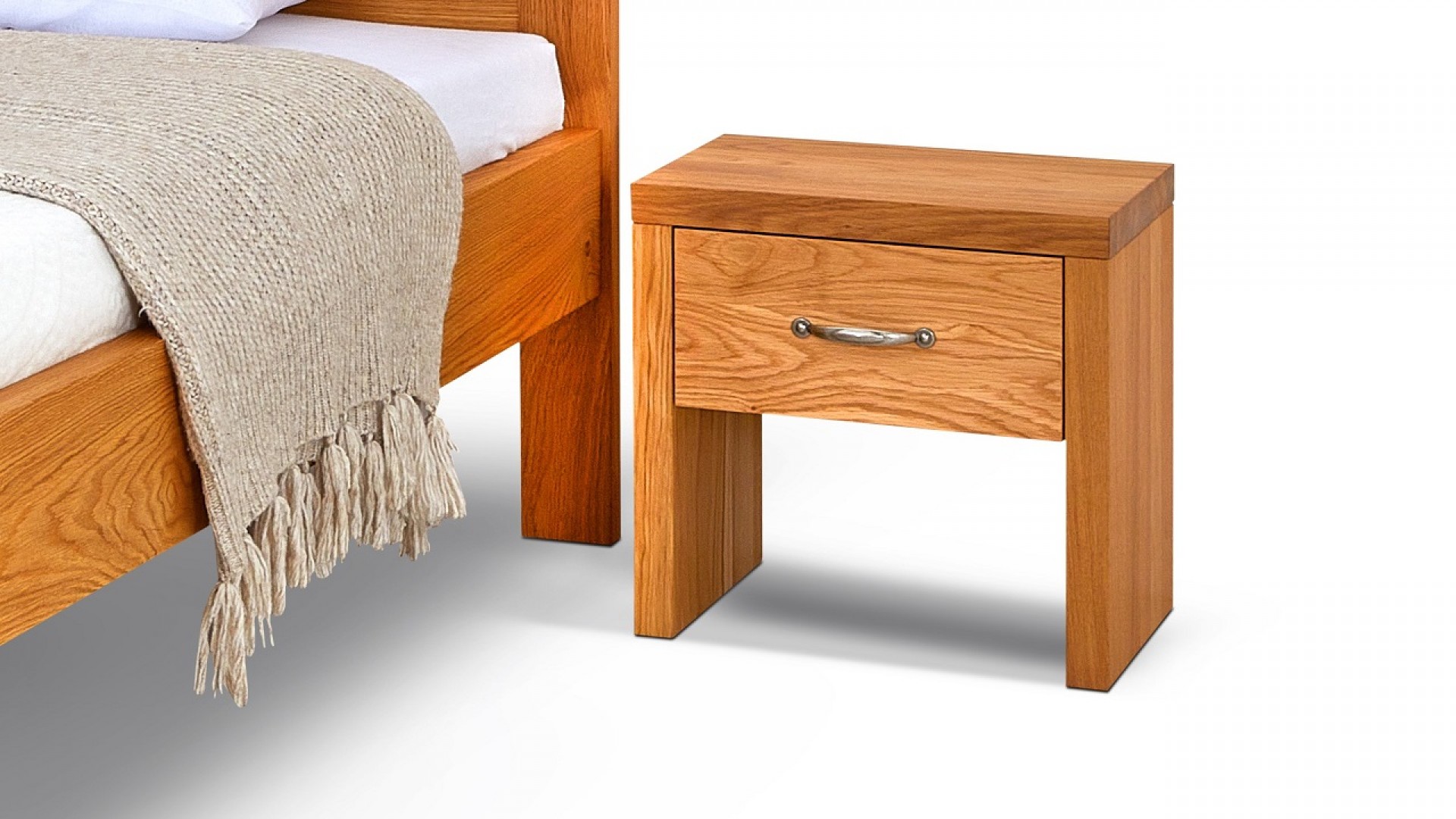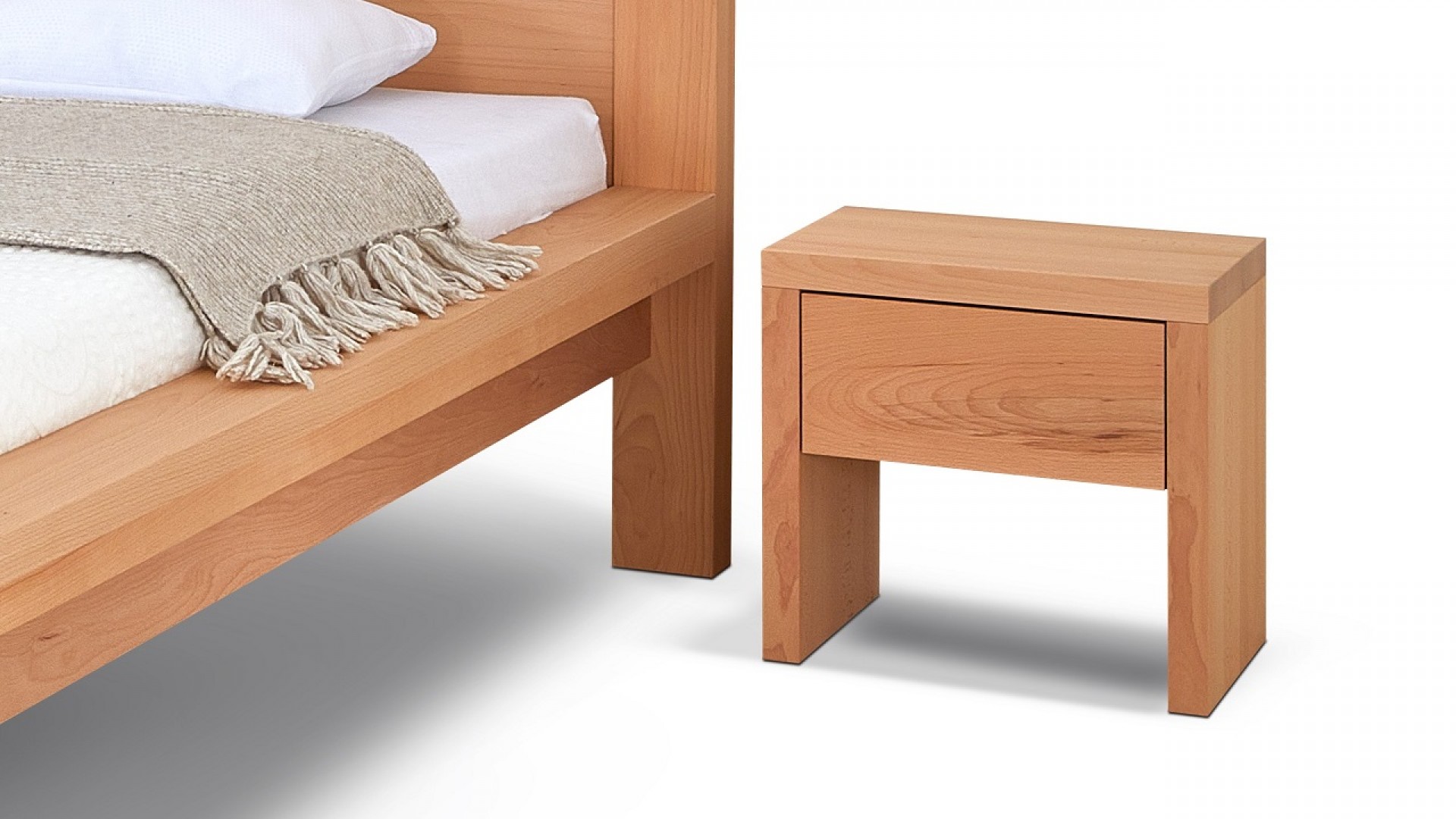 Noční stolek z masivu SIENA je tvořen masivním rámem o šíři masivu 4 cm. V základu je noční stolek s jedním šuplíkem, s příplatkem lze dokoupit i spodní poličku. Provedení masiv Buk nebo za příplatek Bříza, Dub, Javor, Jasan. Základní výška po horní desku stolku je 45 cm, rozměr stolku je šíře 45 cm, hloubka 35 cm. Na přání uděláme stolek v jakémkoliv rozměru. Kalkulaci na jiný rozměr Vám sdělíme obratem. Noční stolek je z masivu o šíři 4 cm, čelo šuplíku je z masivu o šíři 2 cm a vnitřek šuplíku je z lamina, dekor buk. Výsuvné kování je rolničkové od Hettich.