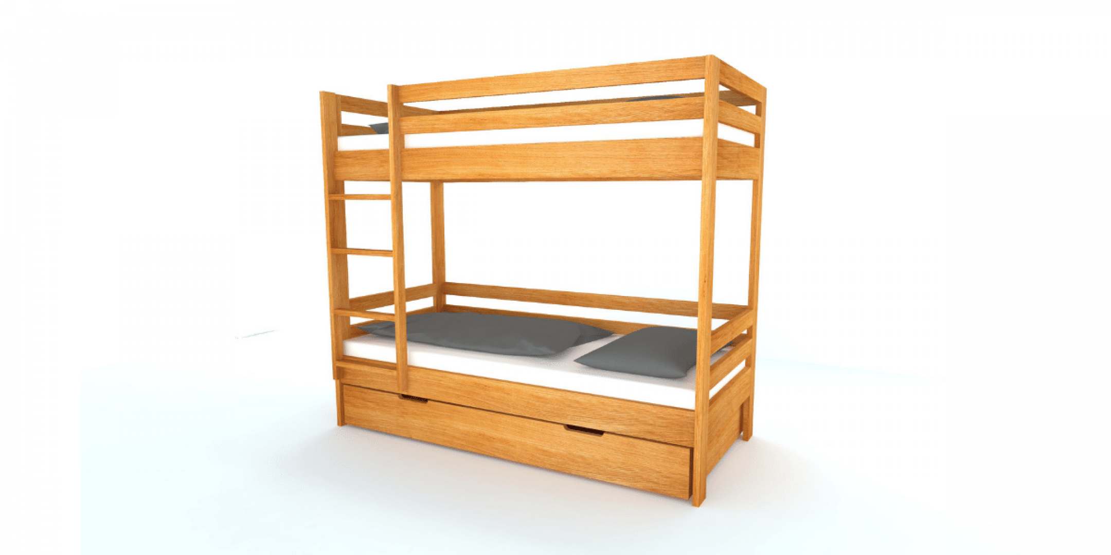 Patrové postele z masivu buk jsou v naší produkci jedny z nejstabilnějších a nejpevnějších. Patrová postel KIDS je z masivního českého buku. Šíře masivu je u bočnic i čel postele 2,8 nebo 4 cm dle výběru.