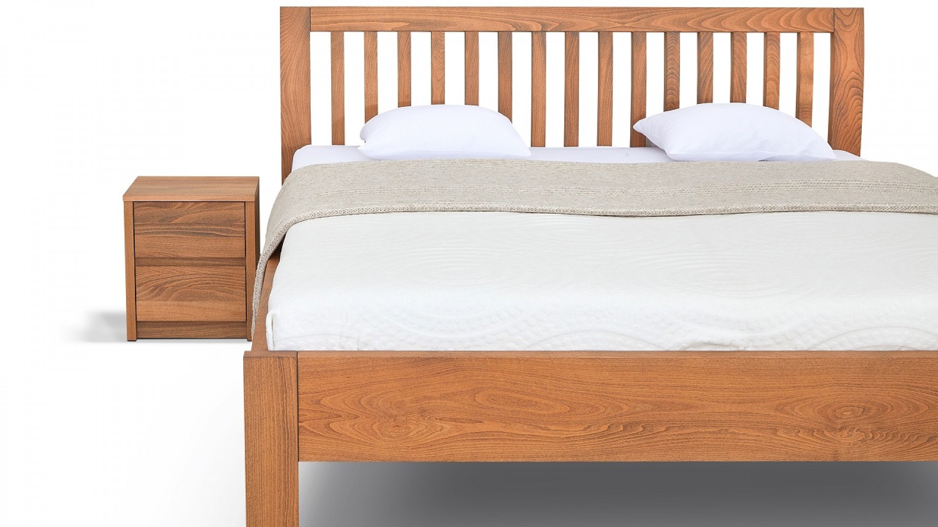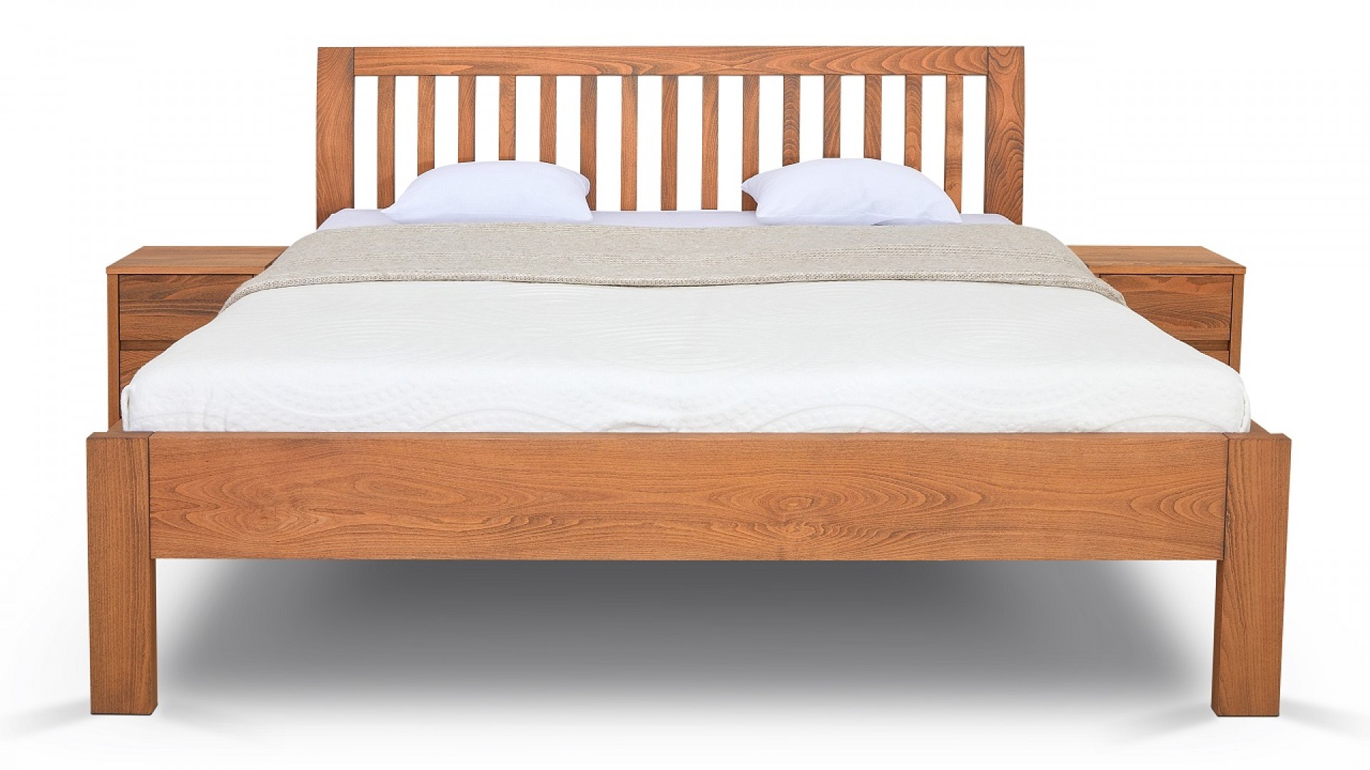Spojení bočnic a čel je provedeno postelovým kováním od značkového výrobce Hettich. Postel se skládá z bočnic, nožního čela a hlavového čela. Systém závěsného kování umožňuje snadnou montáž i demontáž.