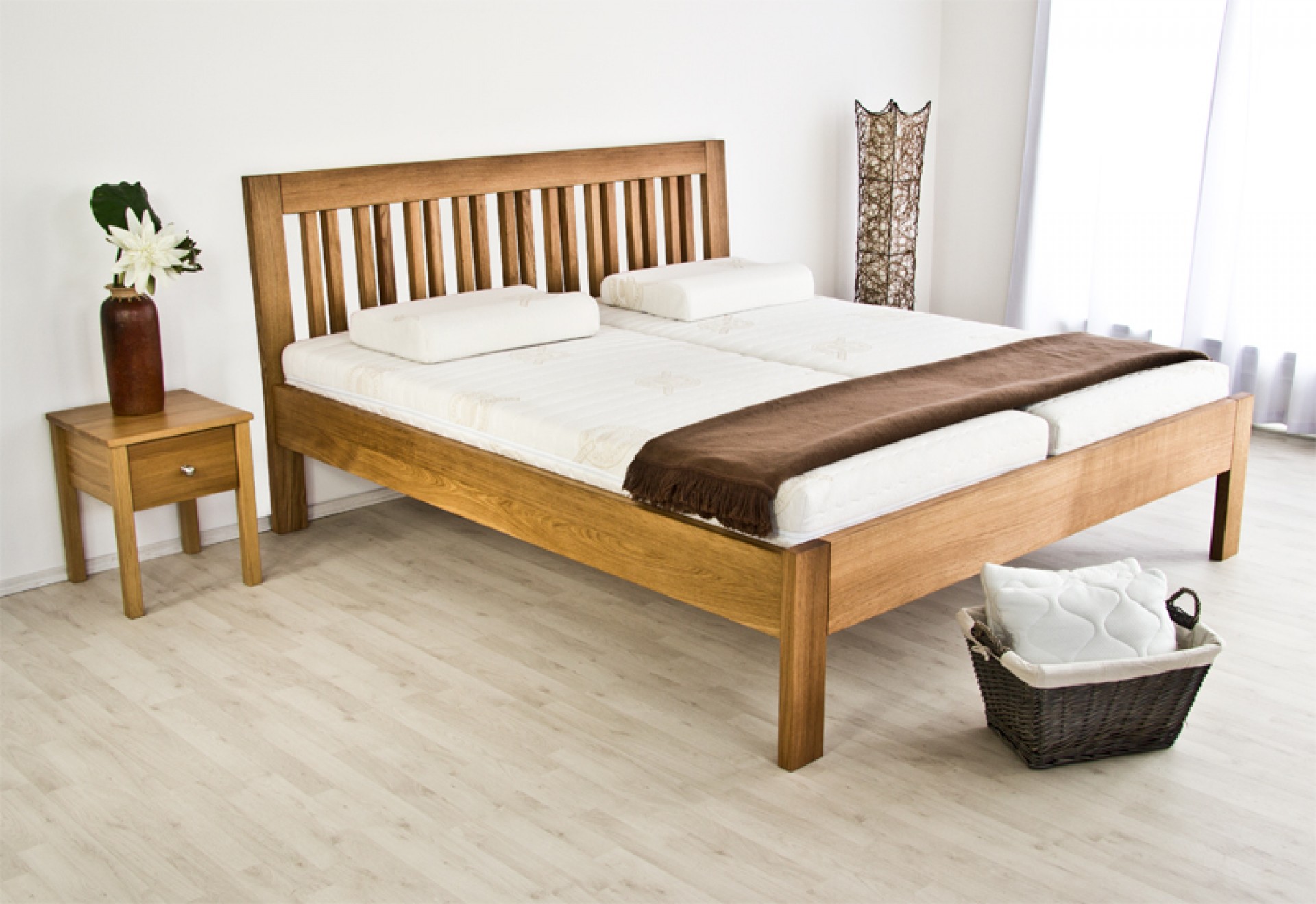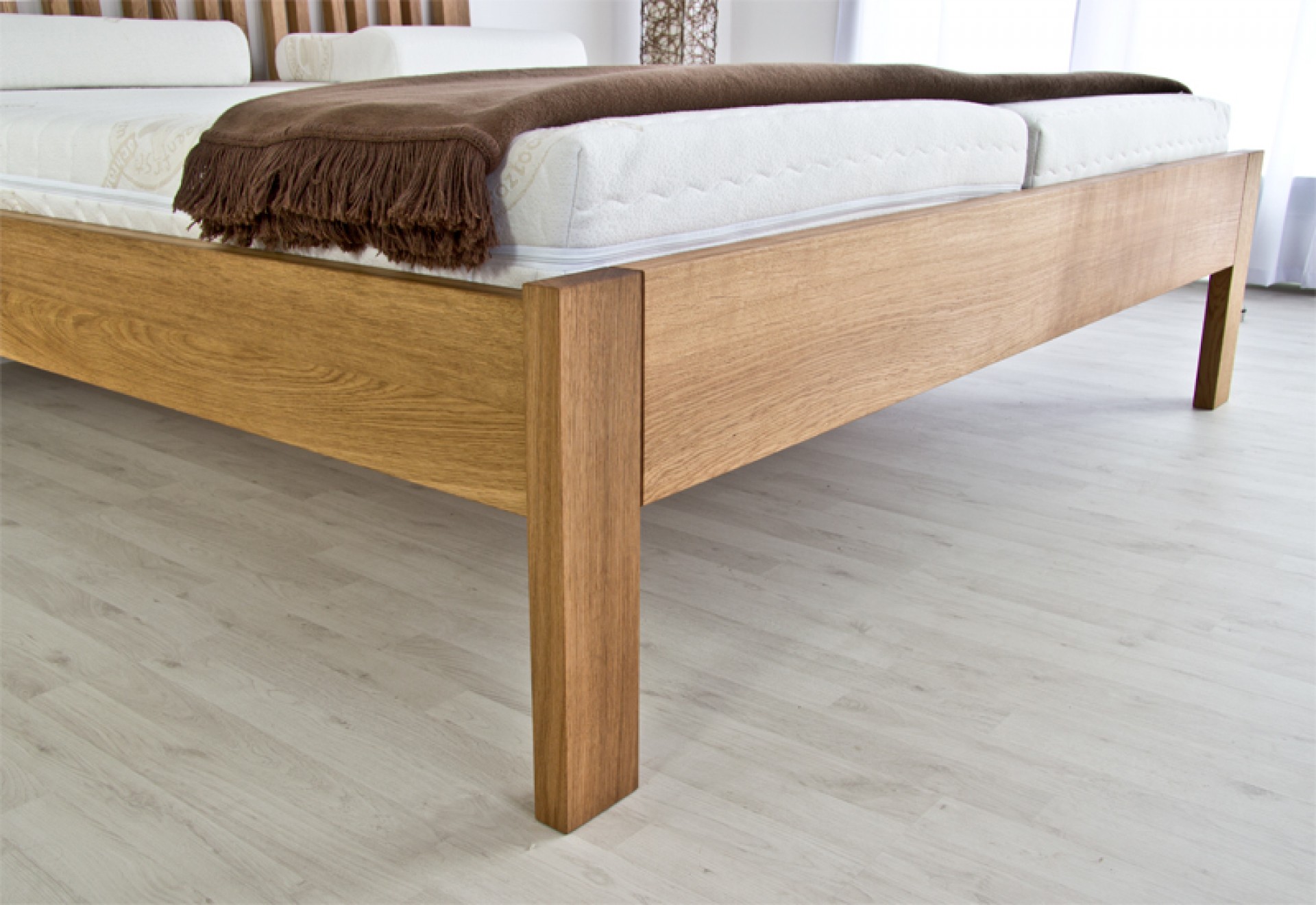 Konstrukce postele o šíři masivu 4 cm.
