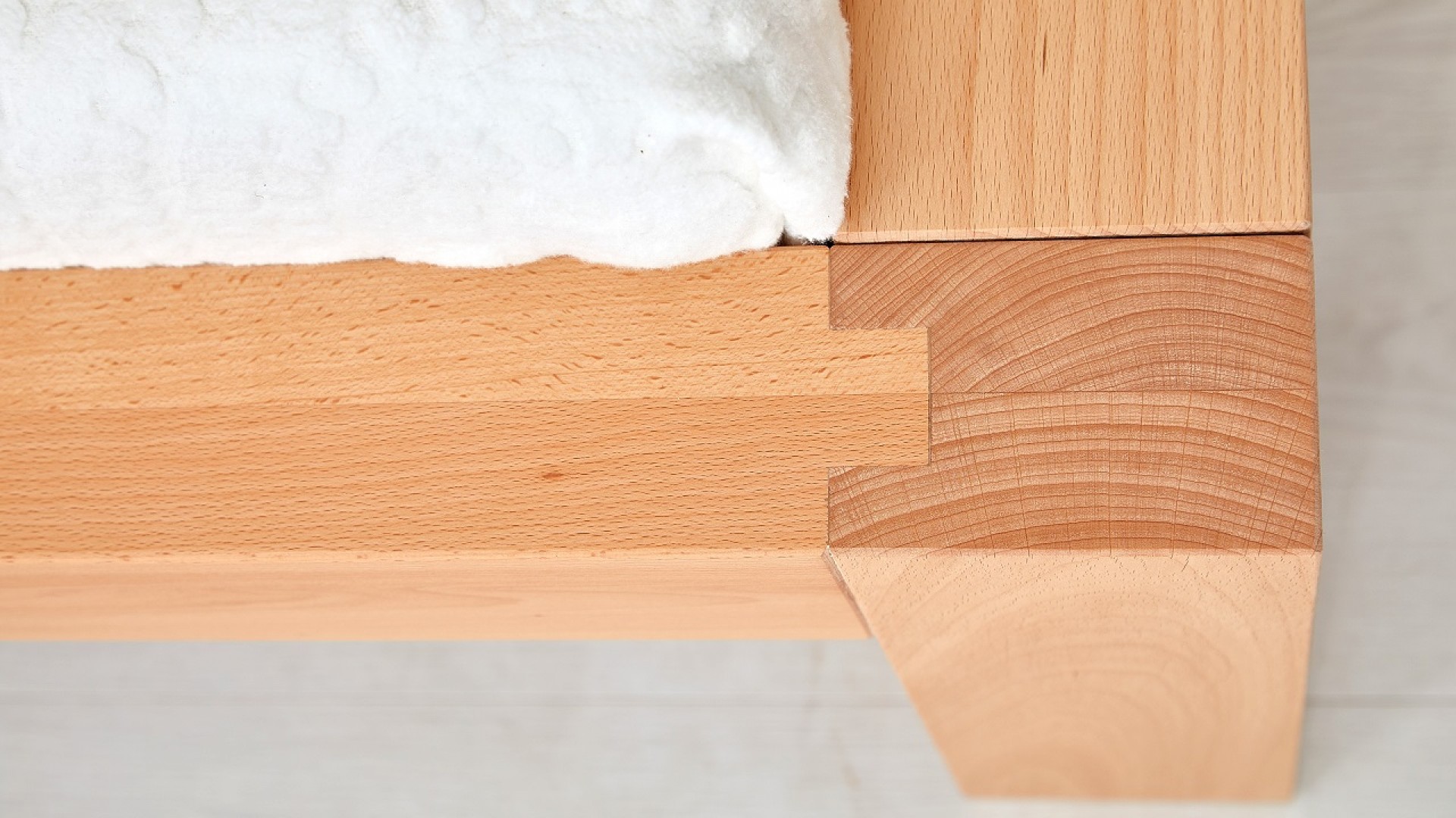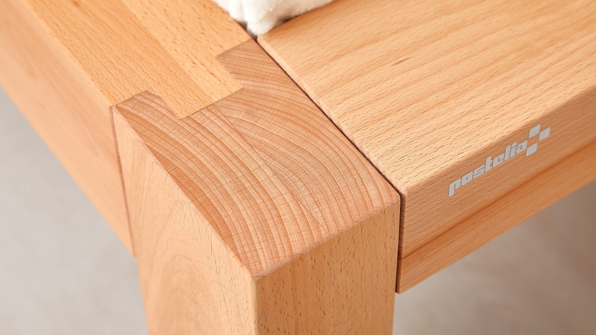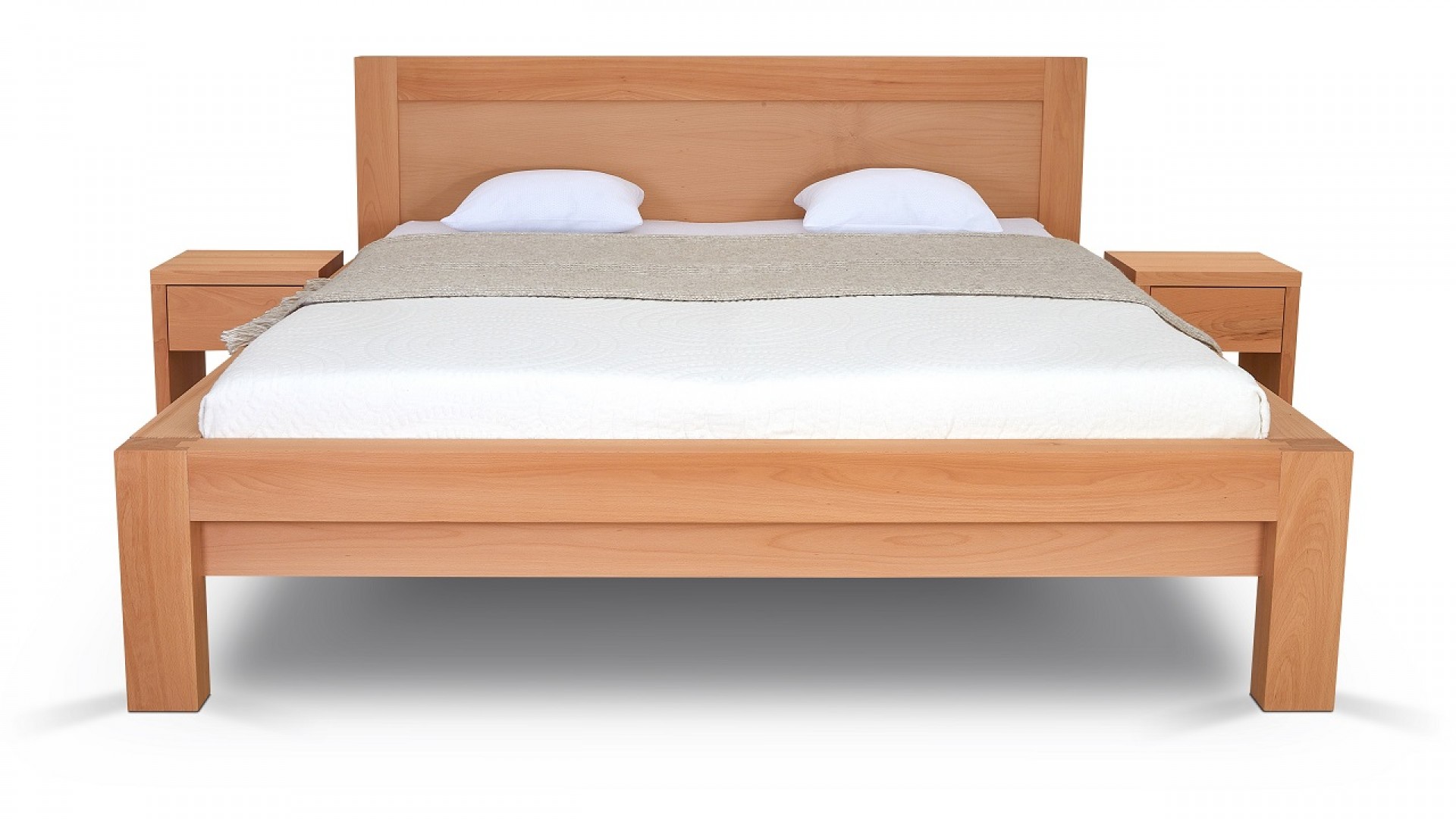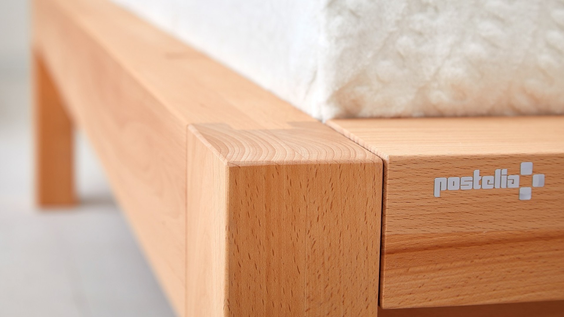 Spojení bočnic a čel je provedeno postelovým kováním od značkového výrobce Hettich. Postel se skládá z bočnic, nožního čela a hlavového čela. Systém závěsného kování umožňuje snadnou montáž i demontáž.