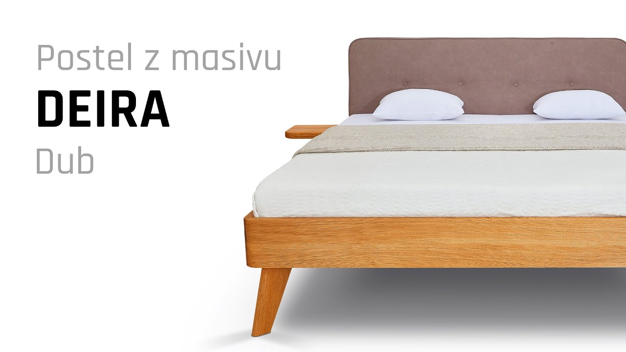 Designová postel z masivu DEIRA v retro vzhledu s lomeným hlavovým čelem, čalouněné unikátní látkou AquaClean. Masivní tvrdé dřevo buk o síle 4 cm. Kování Hettich s doživotní zárukou. Povrchová úprava 100% přírodní olejo-vosk od BIOFA. Výběr z více druhů barevného provedení oleje. Výška hlavového čela 100 cm.