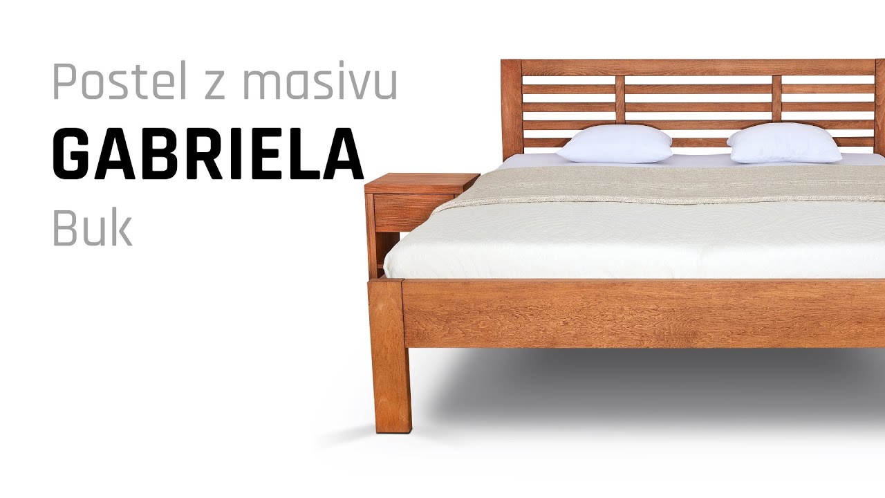 Postel z masivu GABRIELA je s velmi lákavou cenovou nabídkou v kategorii bukových postelí s ohýbaným hlavovým čelem. Hlavové čelo tvoří několik horizontálních a dvě vertikální příčky, v základu je čelo vysoké 90 cm, nebo za příplatek s výškou 100 cm. Garbiela se vyrábí pouze v bukovém masivu, v povrchové úpravě přírodní olejování BIOFA.