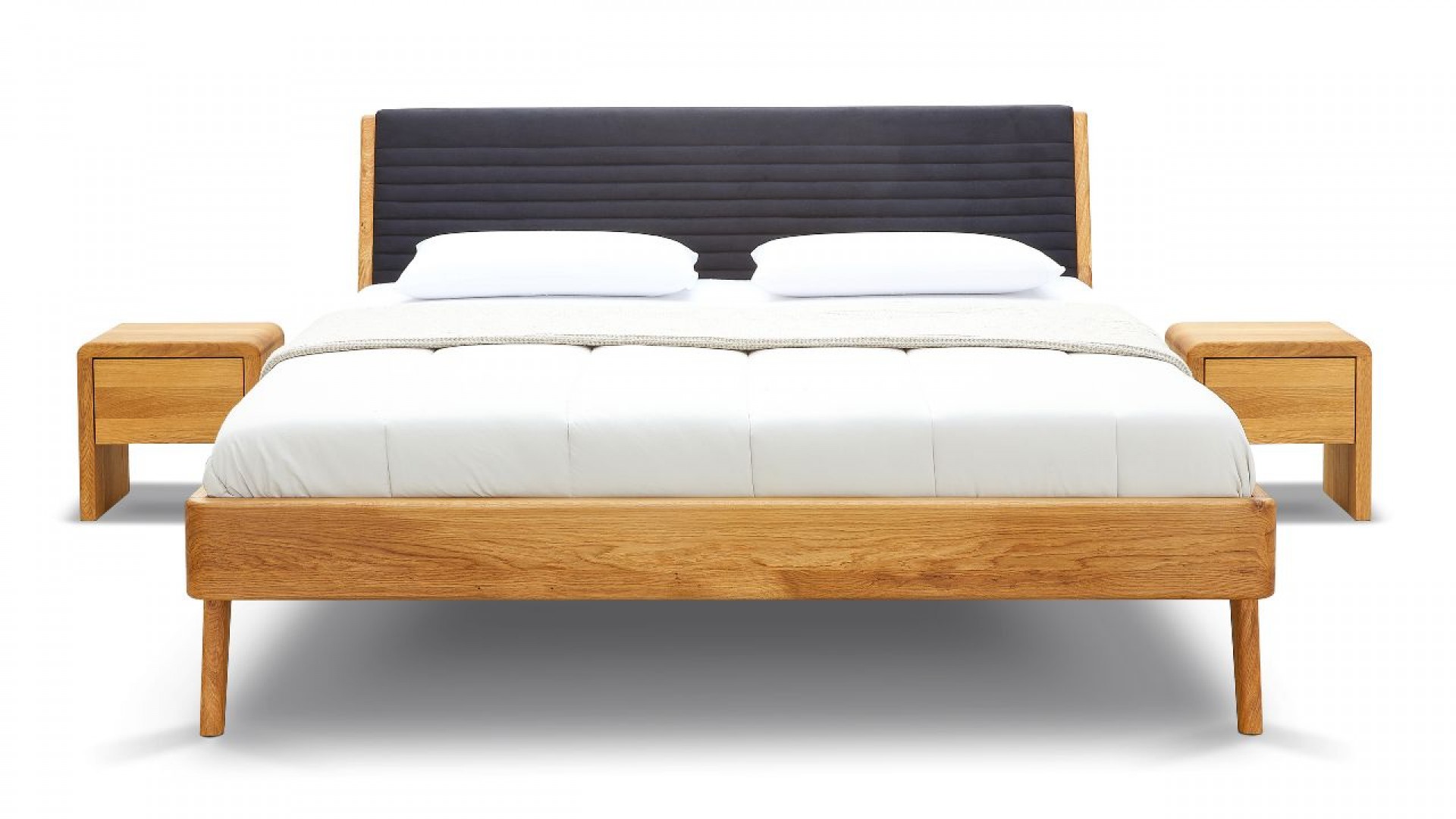 Designovou postel z masivu LAGO si můžete objednat v provedení masivní bukovou, nebo dubovou. Šíře masivu je 4 cm a konstrukci spojuje kování od Hettich. Povrchová úprava je 100% přírodní olejo-vosk od BIOFA, za příplatek můžete zvolit jeden z 18 barevných olejo-vosků. Postel LAGO má hlavové čelo vysoké 100 cm.