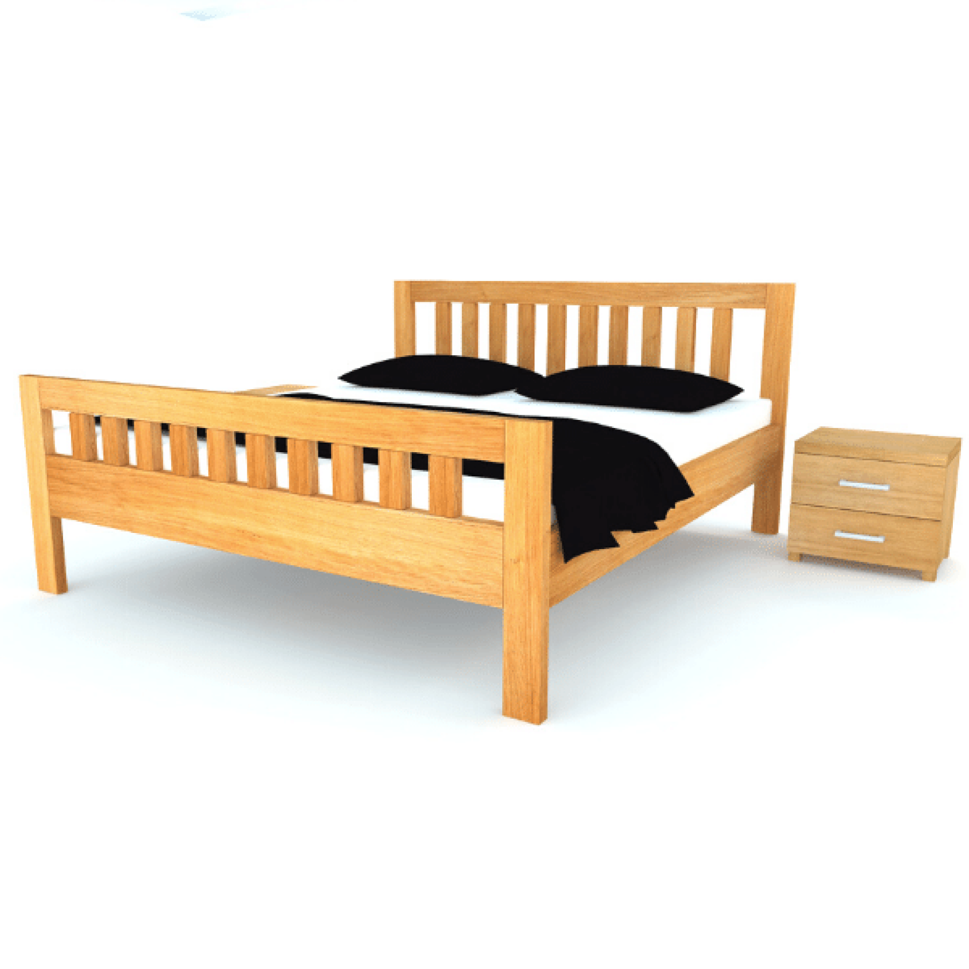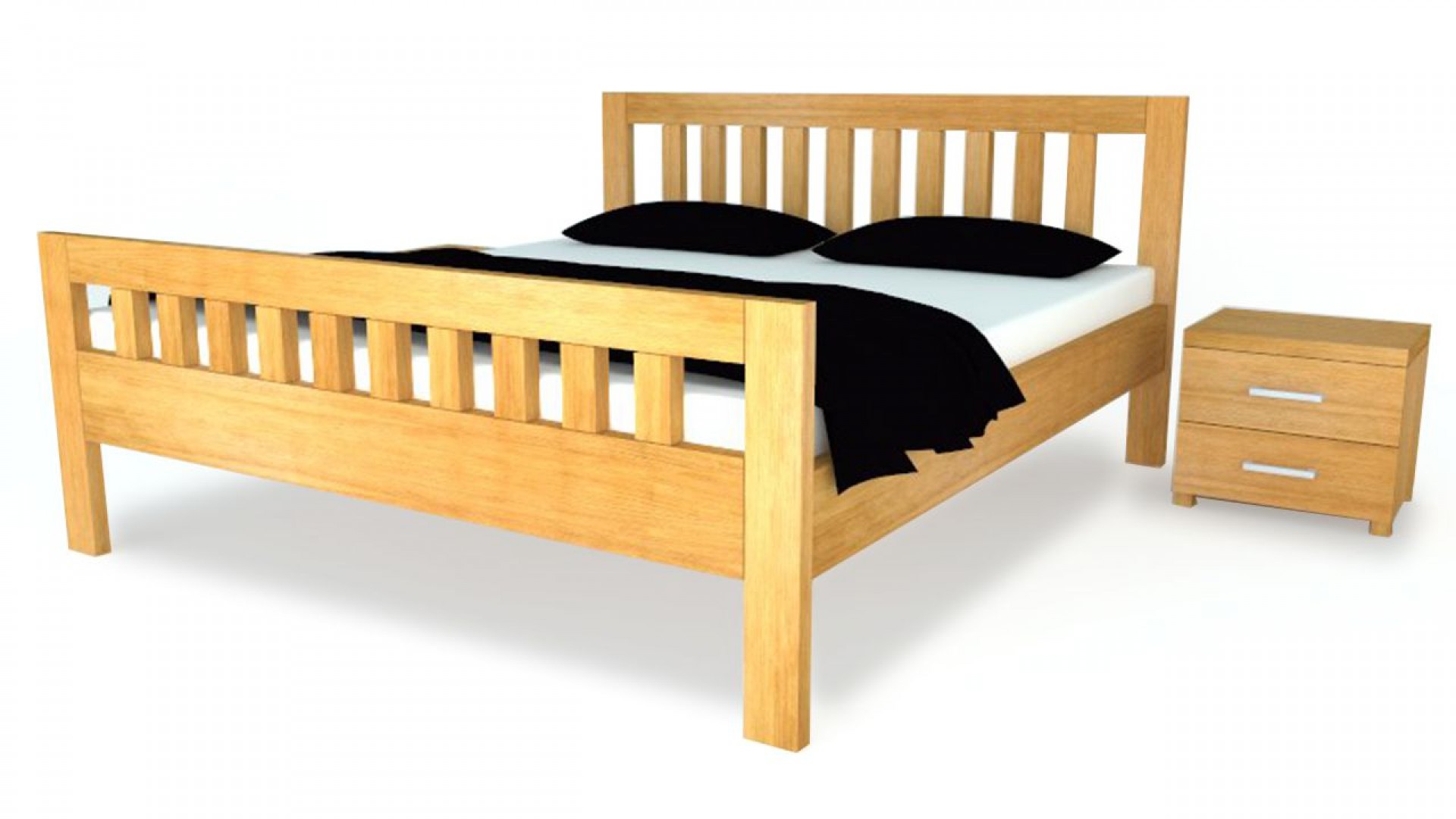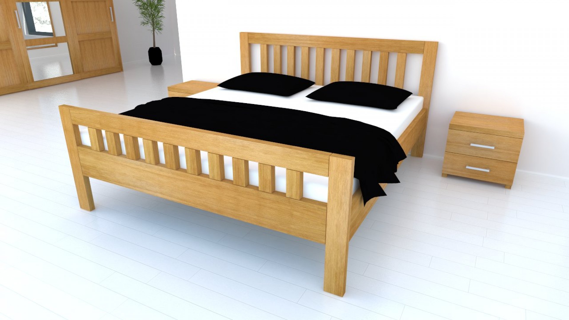 Postel z masivu MIA PLUS dub s hlavovým a nožním čelem vyplněným šprušlemi. Dubové masivní tvrdé dřevo o síle 3,7 cm. Značkové kování s doživotní zárukou od Hettich Výběr z více druhů mořidel a rozměrů postele.