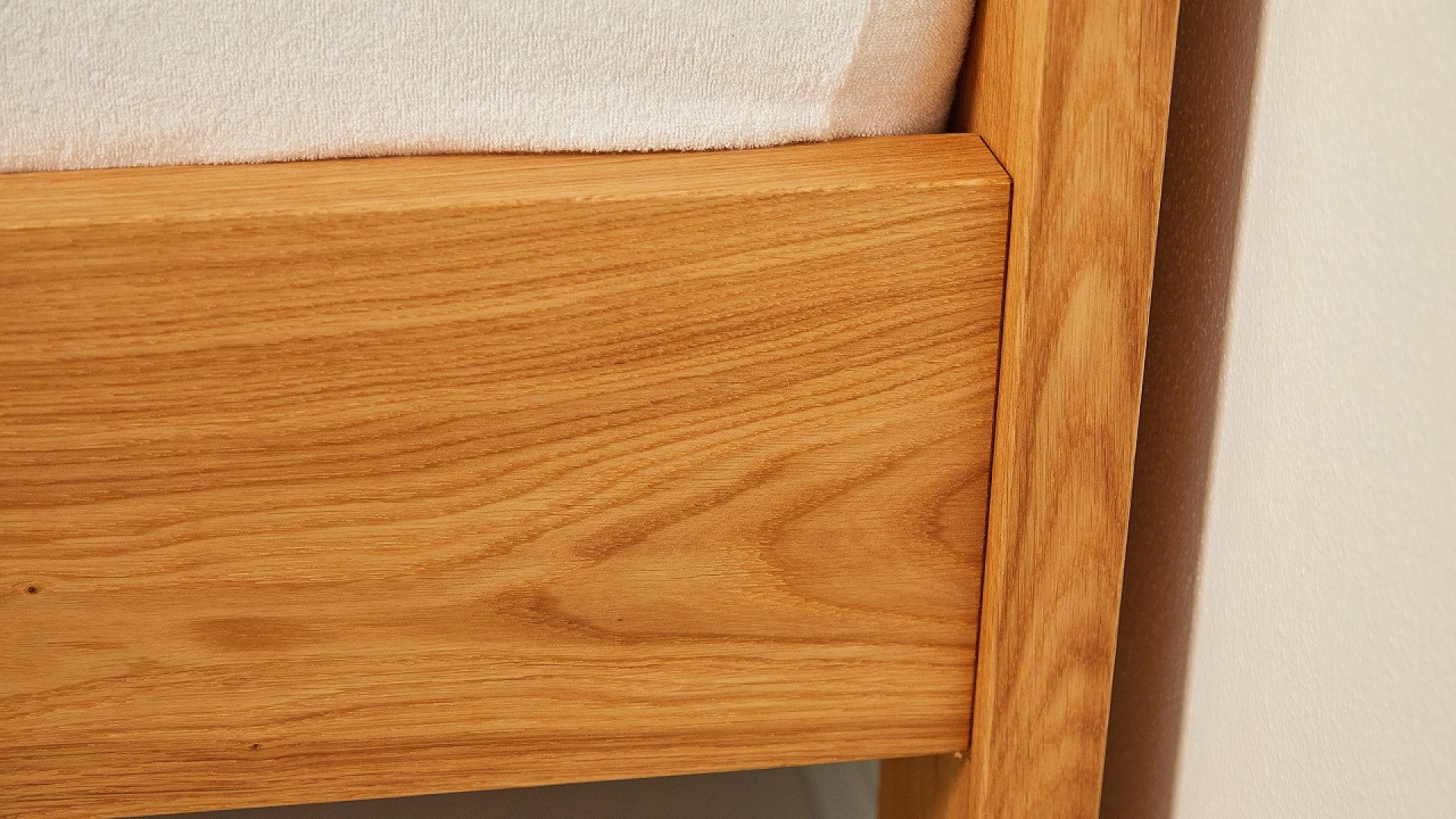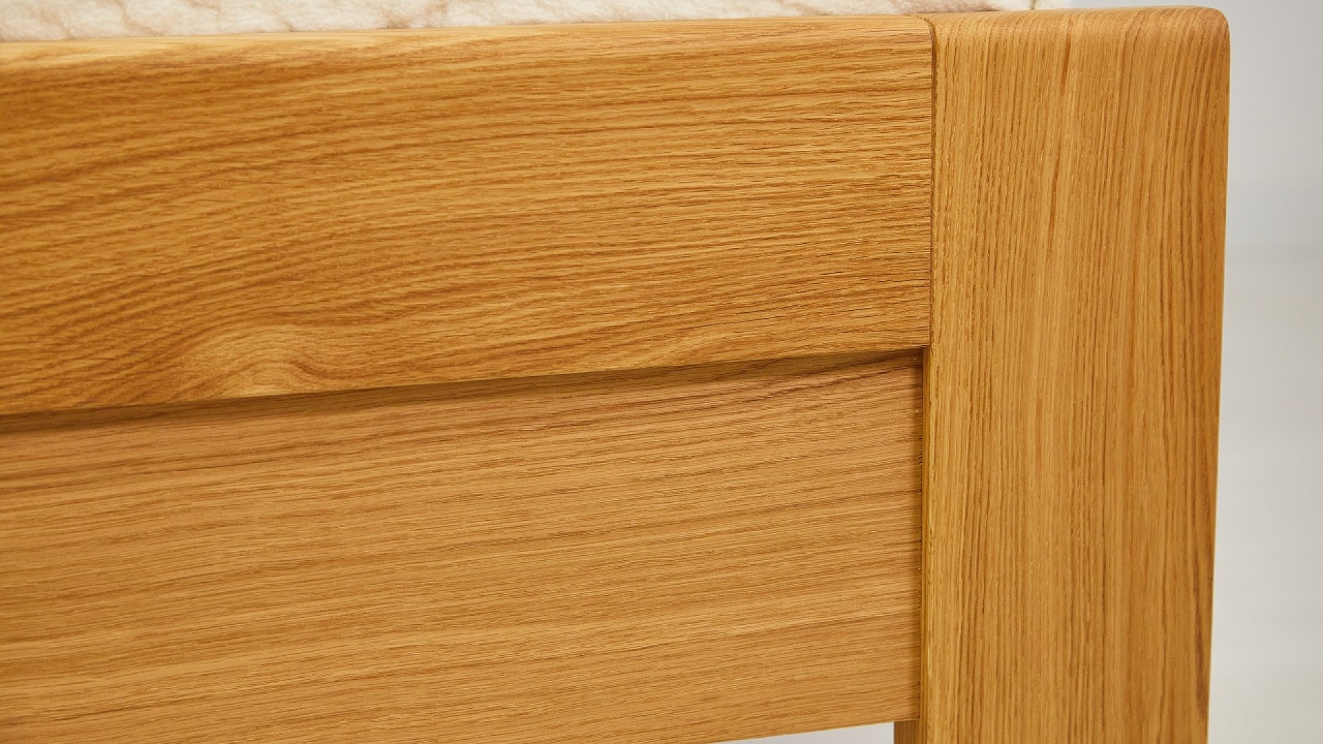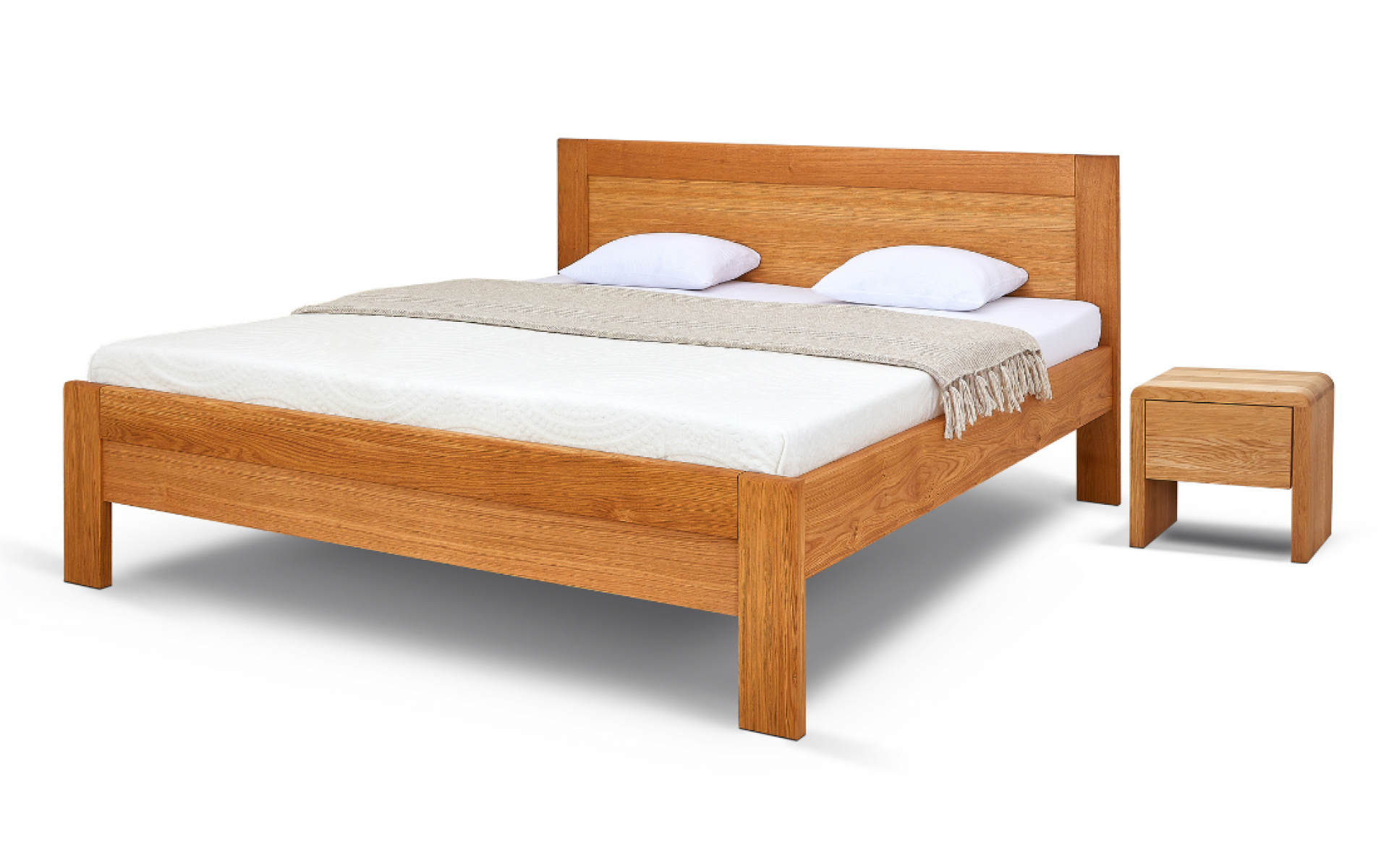 Postel z masivního Dubu ONTARIO je velmi elegantní postel s plným hlavovým čelem. Tato postel je vyráběna z masivu o šíři 3,7 cm. Povrchová úprava postele je přírodní olejo-vosk značky BIOFA. Konstrukce postele je hladká, výplně lze zvolit také hladké, nebo za příplatek drásané. Na výběr je z 18-ti barevných odstínů. Kombinace kvalitních přírodních materiálů a atraktivní cenové nabídky řadí tuto postel mezi jednu z nejprodávanějších. Výška hlavového čela 85 cm nebo 100 cm.