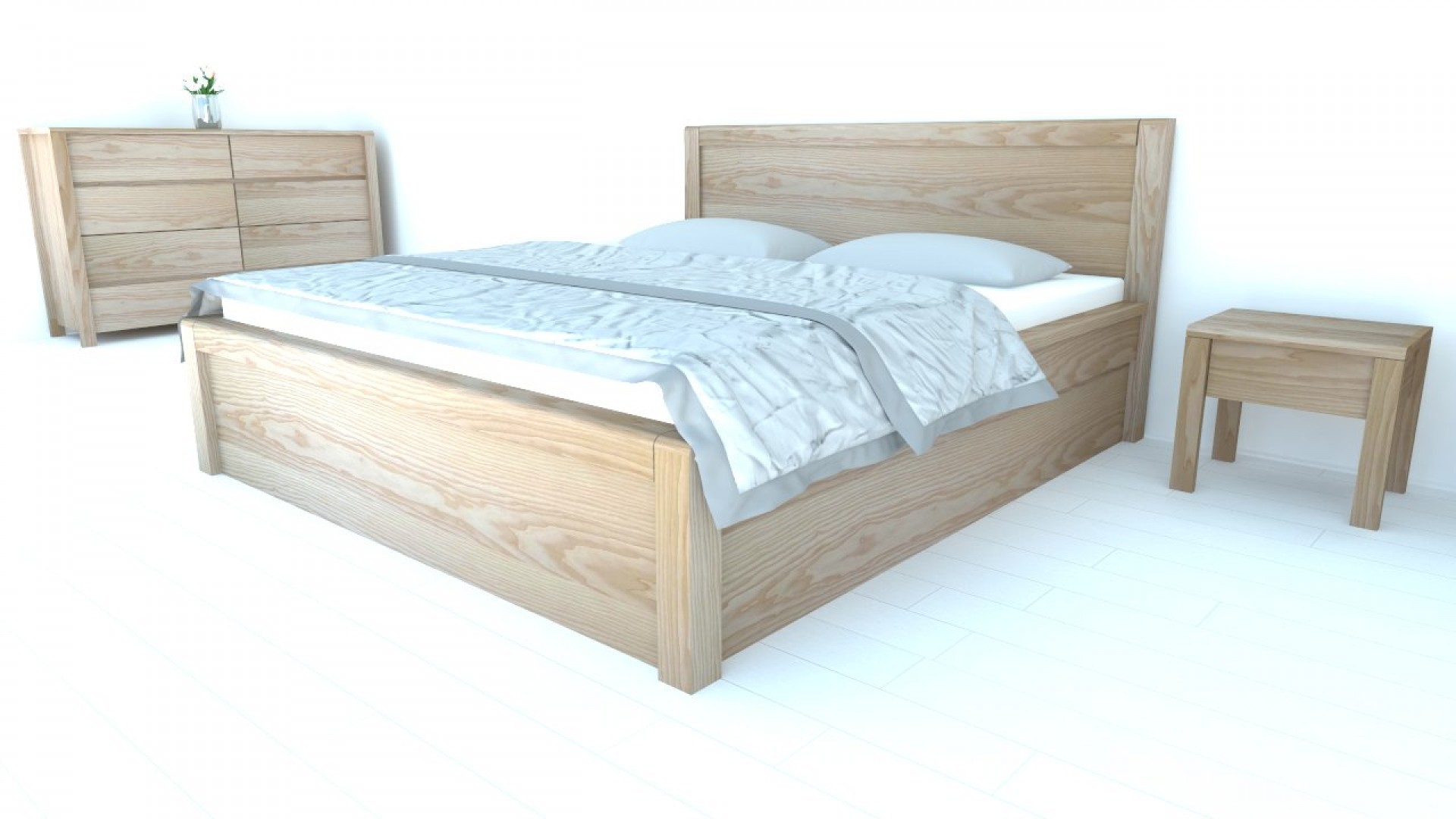 Postel z masivu s úložným prostorem STONE má zaoblenou hranu v hlavovém a nožním čele. Šíře masivu hlavového a nožního čela postele je 8 cm. Bočnice jsou tvořené 4 cm masivem, postel budí celkově velmi masivní dojem a vypadá opticky větší.