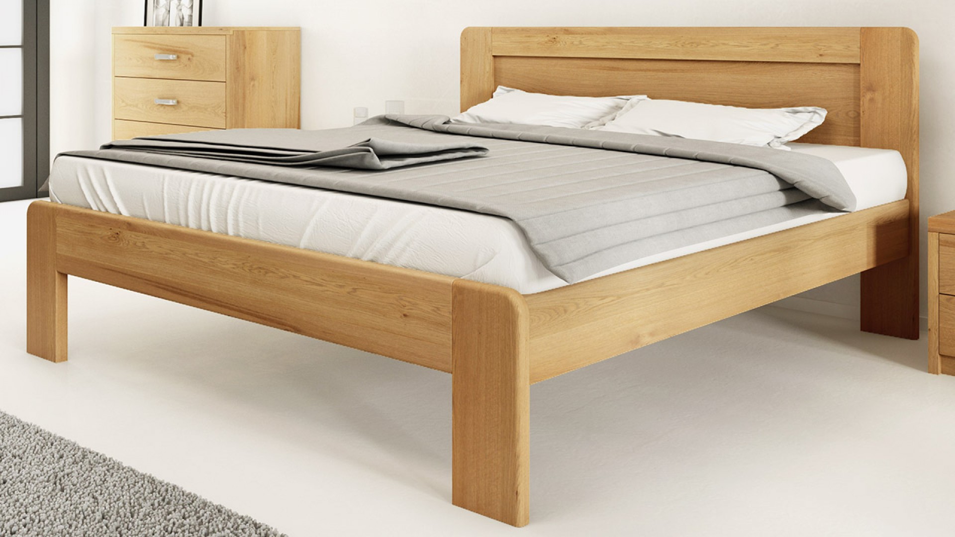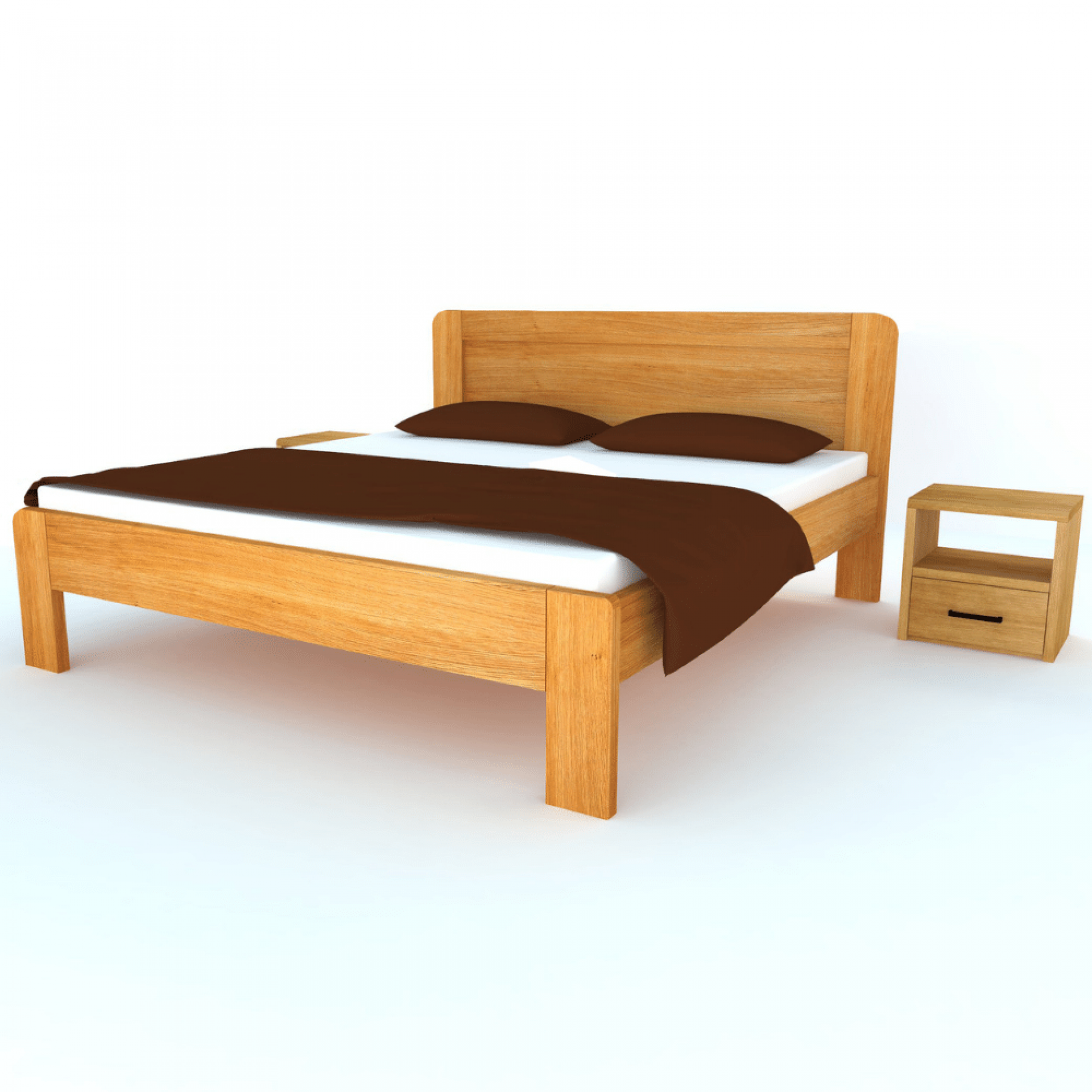 Postel z masivu SISI dub se zaoblenými hranami a rohy na čelech postele. Dubové masivní tvrdé dřevo o síle 3,7 cm. Značkové kování s doživotní zárukou od Hettich Výběr z více druhů olejů a rozměrů postele.